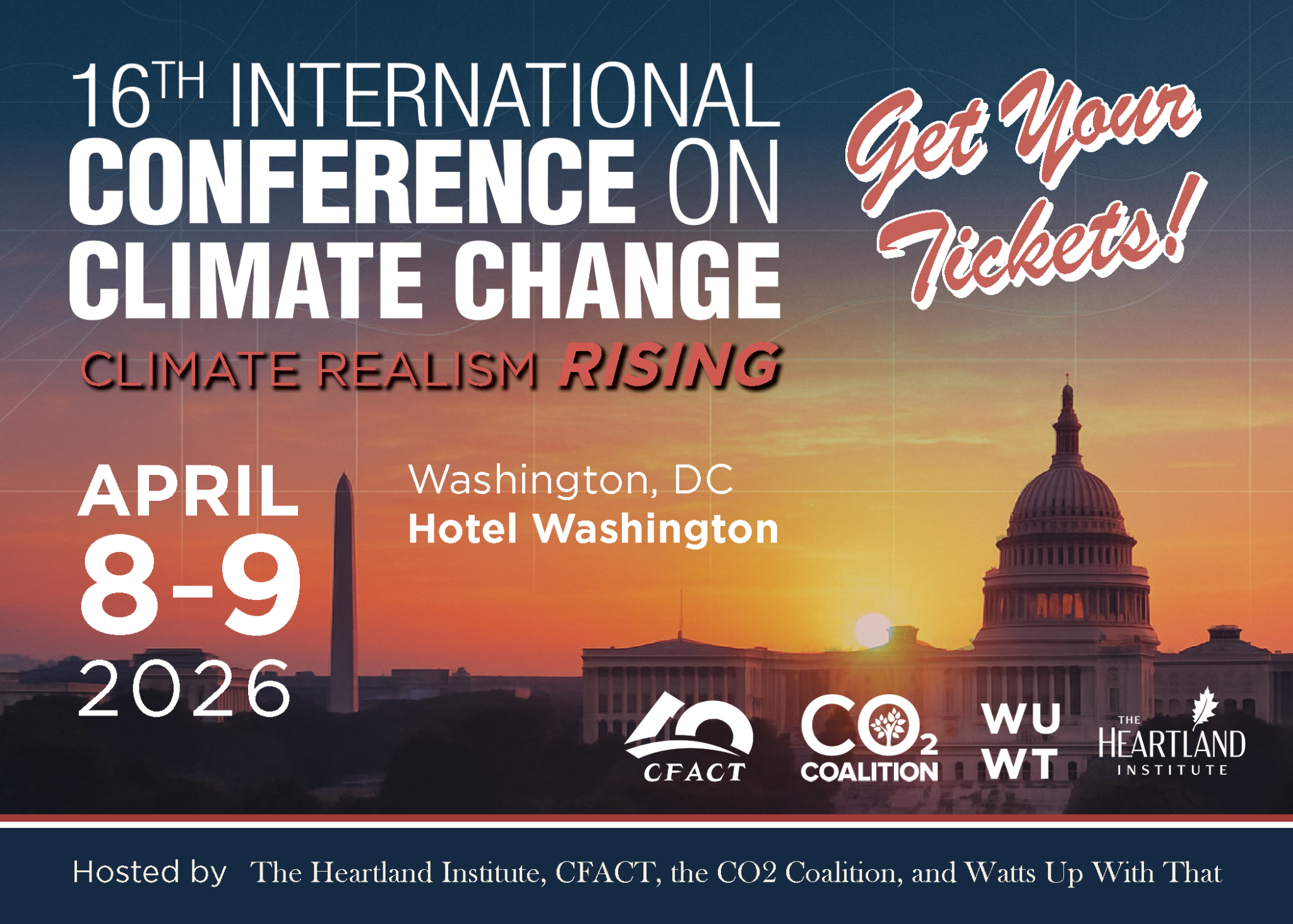 The 16th International Conference on Climate Change, organized by The Heartland Institute, will be held April 8-9 at the Hotel Washington in Washington, DC. It will feature the world’s leading scientists, energy experts, and those making policy in the second Trump administration.