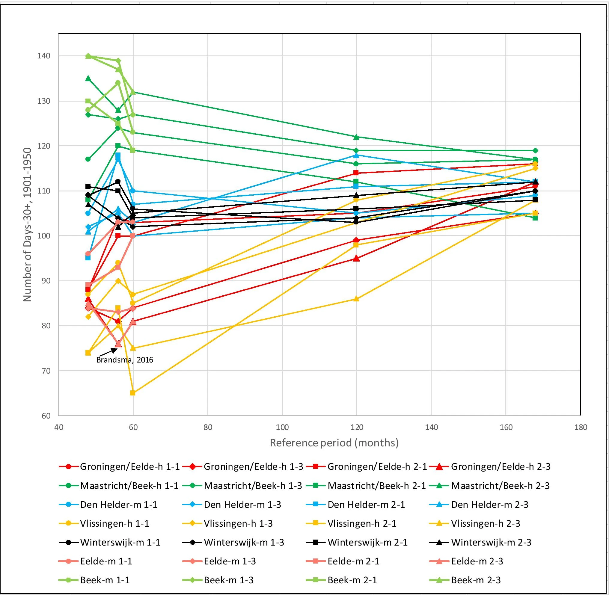 KNMI only showed the outcome labelled Brandsma, 2016 in the figure.