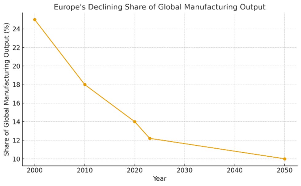 The economic cost of this virtue signalling is catastrophic. Europe’s electricity and gas prices remain among the highest in the world, crippling its manufacturing base. Automakers, fertiliser plants, aluminium smelters and chemical giants relocate to China, the Middle East and the United States where energy remains abundant and policy rational. Europe’s share of global industrial output shrinks yearly; its debt-laden welfare states consume ever more of the shrinking pie.