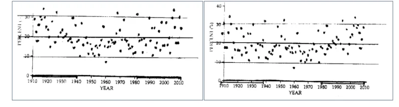 Clauser n’aborde cependant pas cette question et se contente de reprendre les valeurs de l’indice telles que présentées par L&K et de se demander si elles ont réellement augmenté au cours de la période considérée. Voici la figure 2a de L&K, qui illustre les valeurs de leur indice des extrêmes climatiques américains pour la période 1910-2011 :