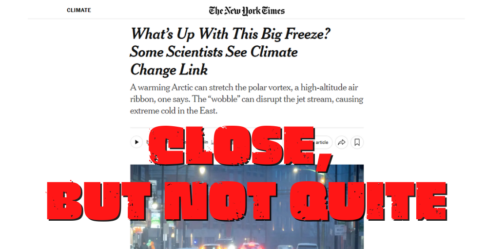 The NYT recovered a modicum of credibility by acknowledging a handful of other perspectives, saying “not all scientists agree.” The authors quote other expert research scientists saying the models and papers published by Cohen and his collaborators are “often not that convincing,” because “long-term temperature trends and climate models show the exact opposite[.]”
