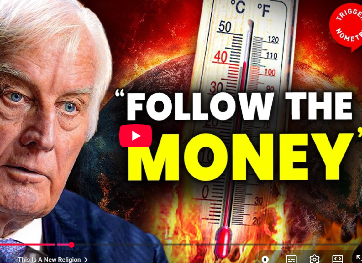 Clintel-ambassador for Australia, prof. Ian Plimer, didn’t hold back in his recent interview on the popular Triggernometry podcast: “There’s a very large body of people out there who are actually using science to promote scams. It’s absolutely crippling Western countries. You can’t run an industrial society on sea breezes and sunbeams.”