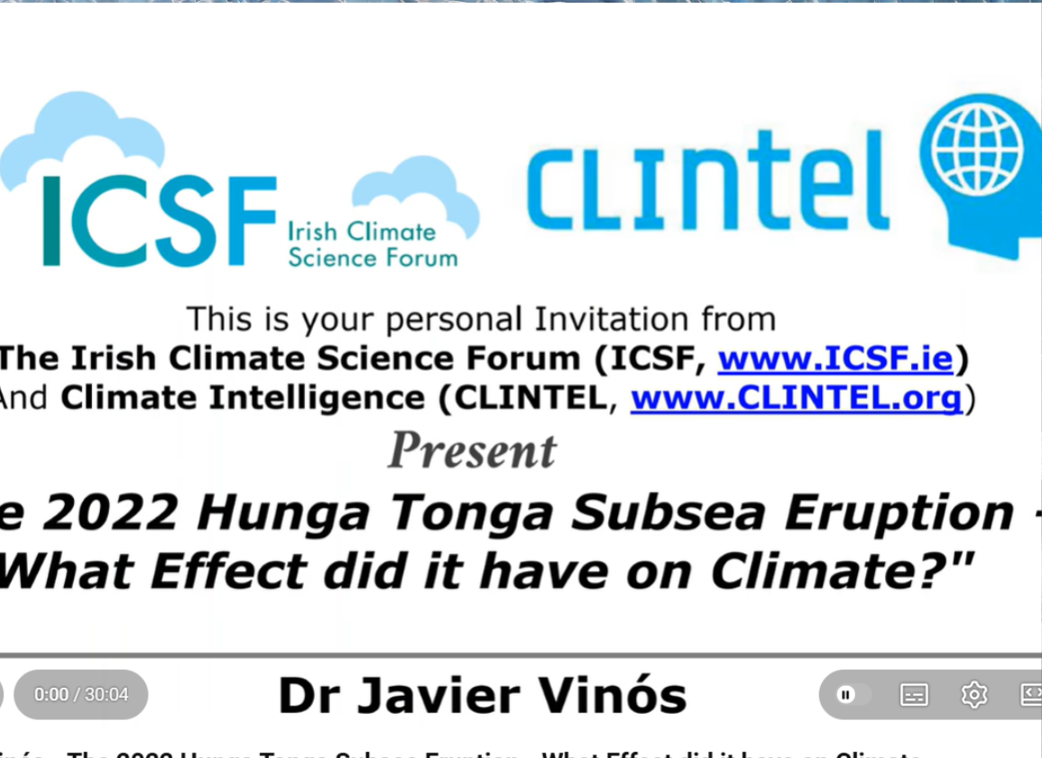 In a recent ICSF/Clintel lecture, Dr. Javier Vinós argued that the January 15, 2022 Hunga Tonga eruption was the main cause of the extraordinary global climate anomalies of 2023–2024. He describes them as the first genuine multi-year global climate event in roughly 80 years, widely misinterpreted by mainstream analyses.