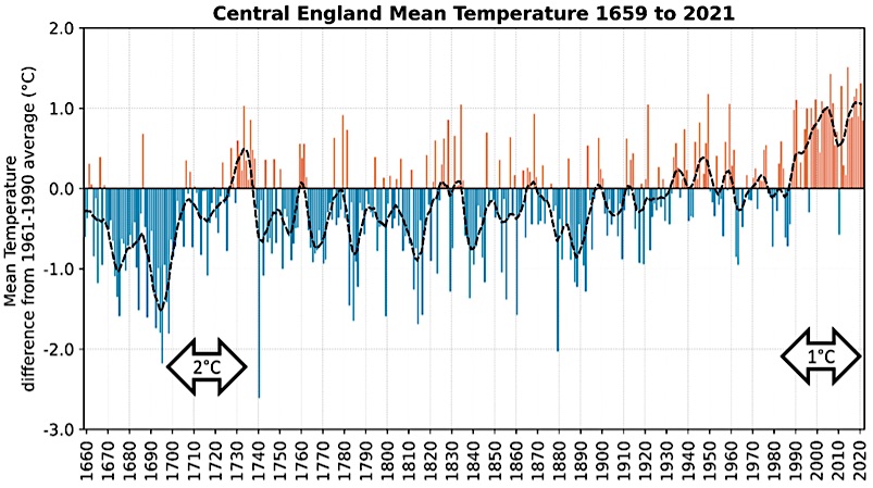 With three and a half centuries of instrument data, it transcends being a weather record; it is a climate change record for central England.
