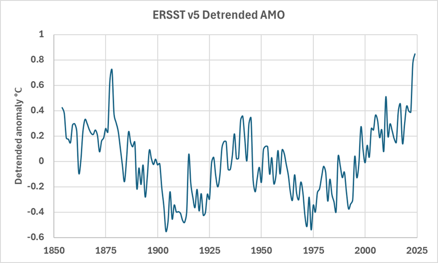 Figure 3. The linearly detrended AMO from ERSST v5 data. After May & Crok (2024).